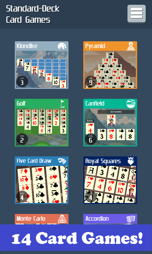 Standard-Deck Card Games is a collection of games that can be played with a standard 52-card deck.